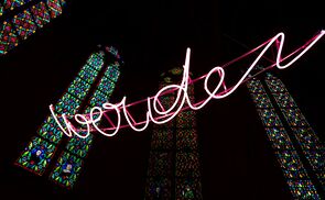 Eine Installation von Sonja Meller in der Krypta des Mariendoms anlässlich des 200. Geburtstages von Anton Bruckner