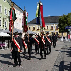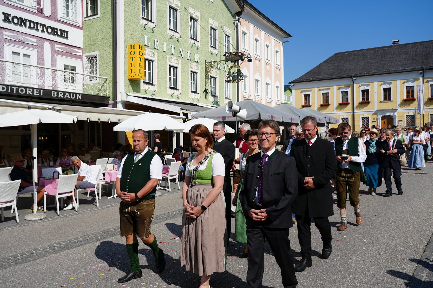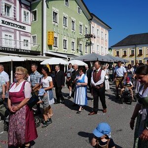 Gekommen waren auch alle Feuerwehren des Abschnitts Mondsee mit ihren großen Jugendgruppen. Sowie viele weitere Vereine, unter ihnen die Mondseer Prangerschützen, die Alttrachten, die Goldhaubengruppe, der Kameradschaftsbund und die Zünfte, die wieder ihre Fahnen bei der Prozession trugen. Die Messe und die Prozession wurden von der Bürgermusikkapelle Mondsee und der Musikkapelle Tiefgraben musikalisch gestaltet.