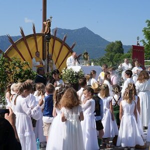 Nach der Messfeier mit Kommunion folgte die Prozession zum wunderschön geschmückten Altar am See.