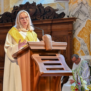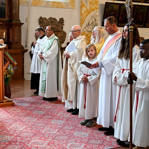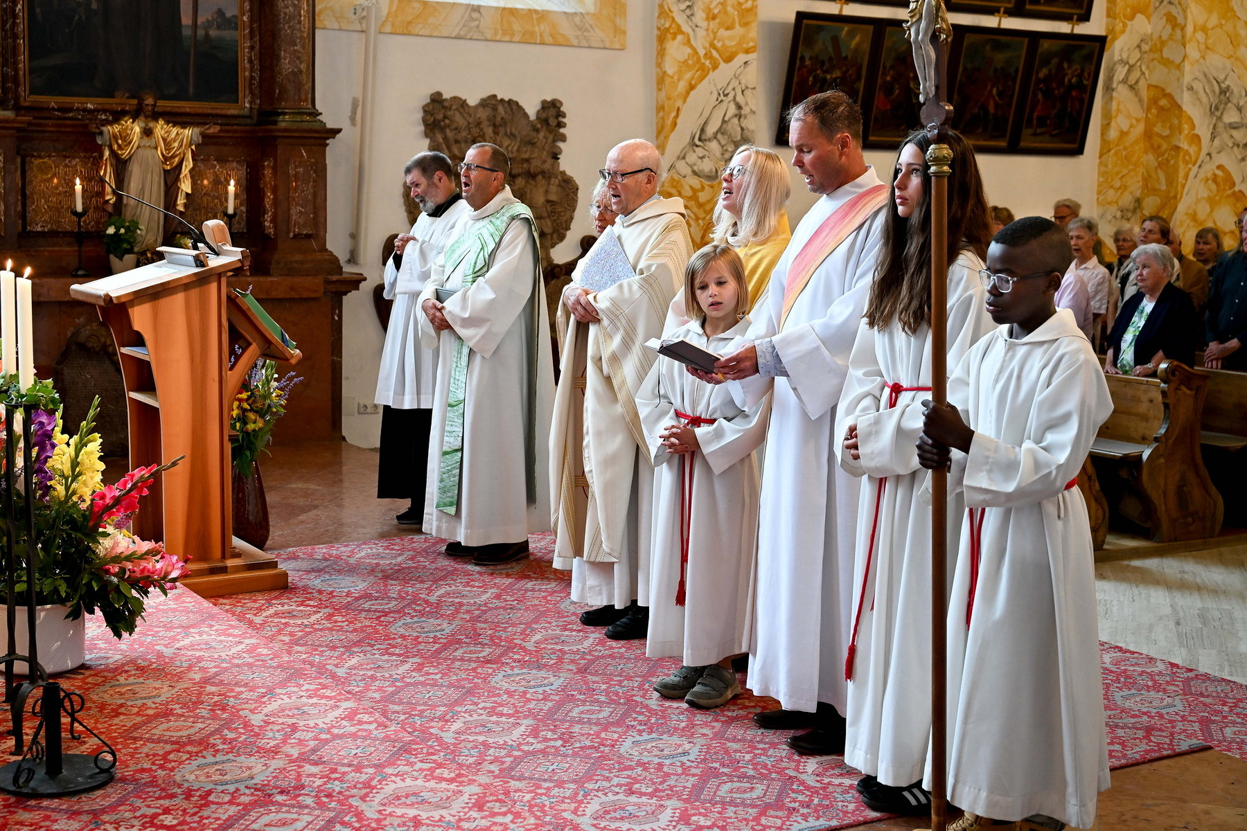 Immer wieder gerne kommt auch unser ehemaliger Pfarrer Franz Kniewasser nach Timelkam, und so feierte er die Festmesse als Zelebrant mit Sabine Kranzinger und den Diakonen Bernhard Pfusterer und Herbert Seiringer und war beim anschließenden Frühschoppen ein gern gesehener Gesprächspartner.