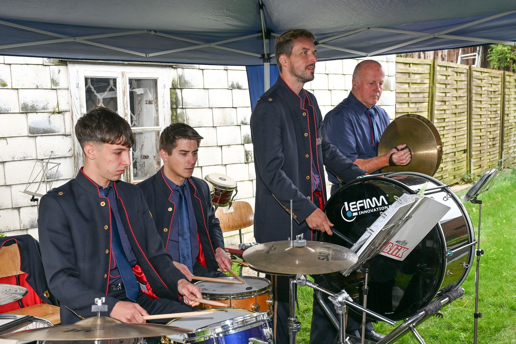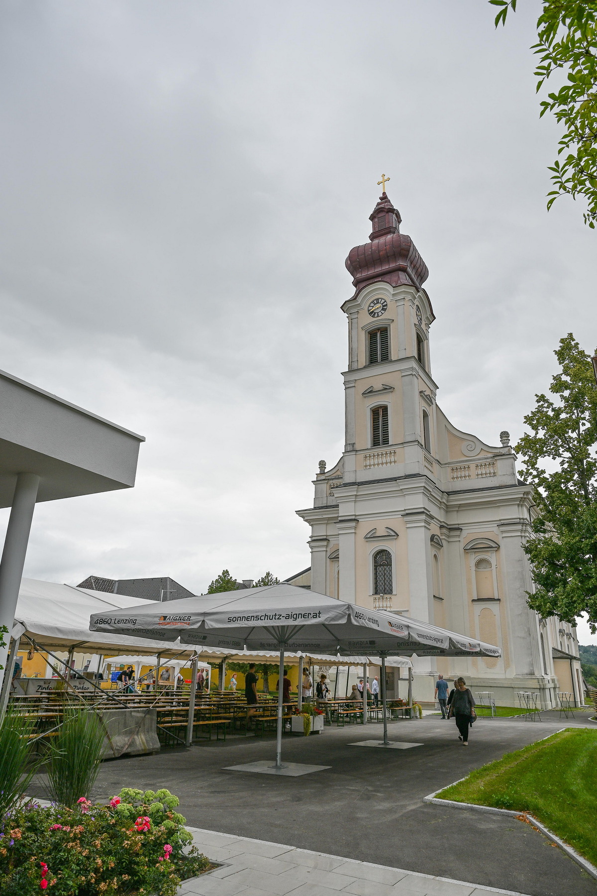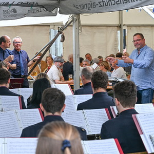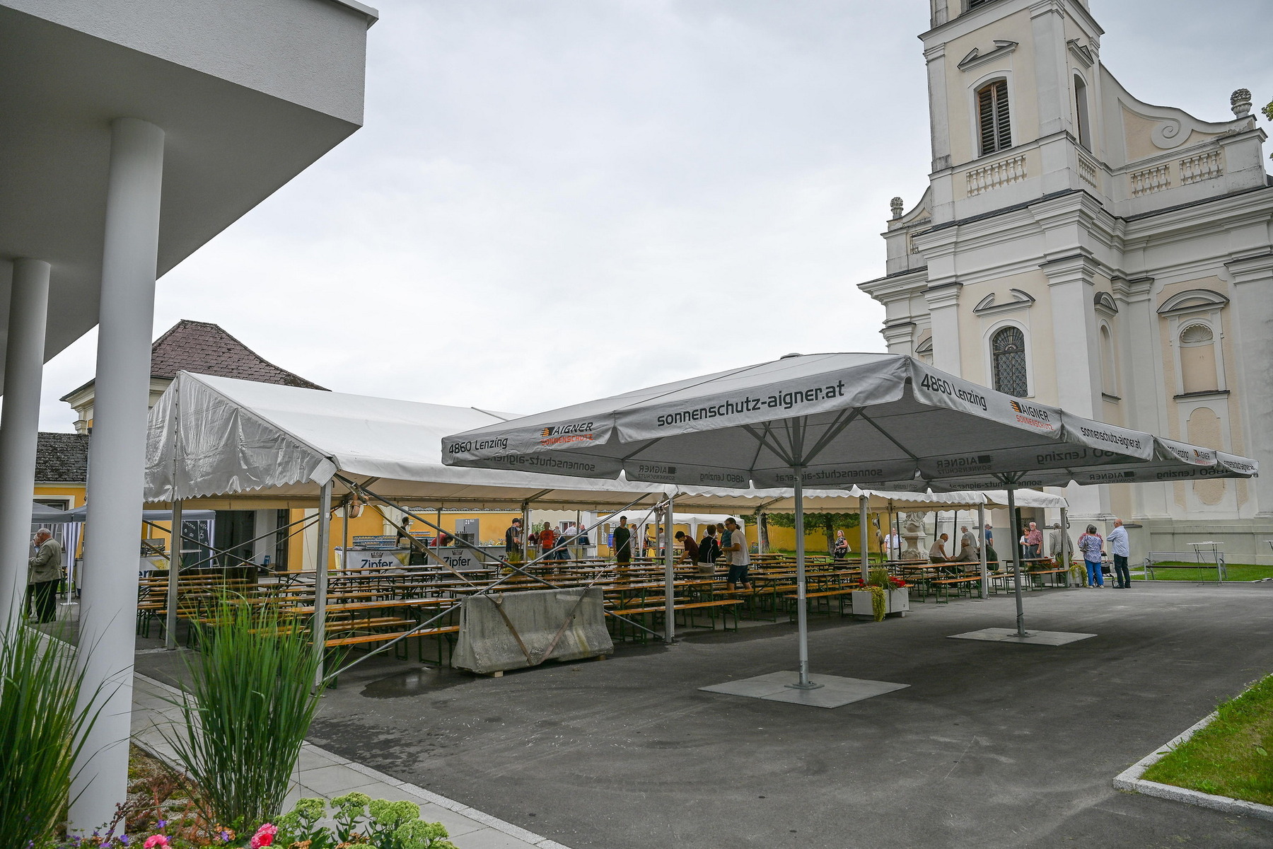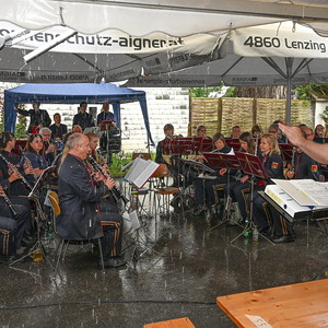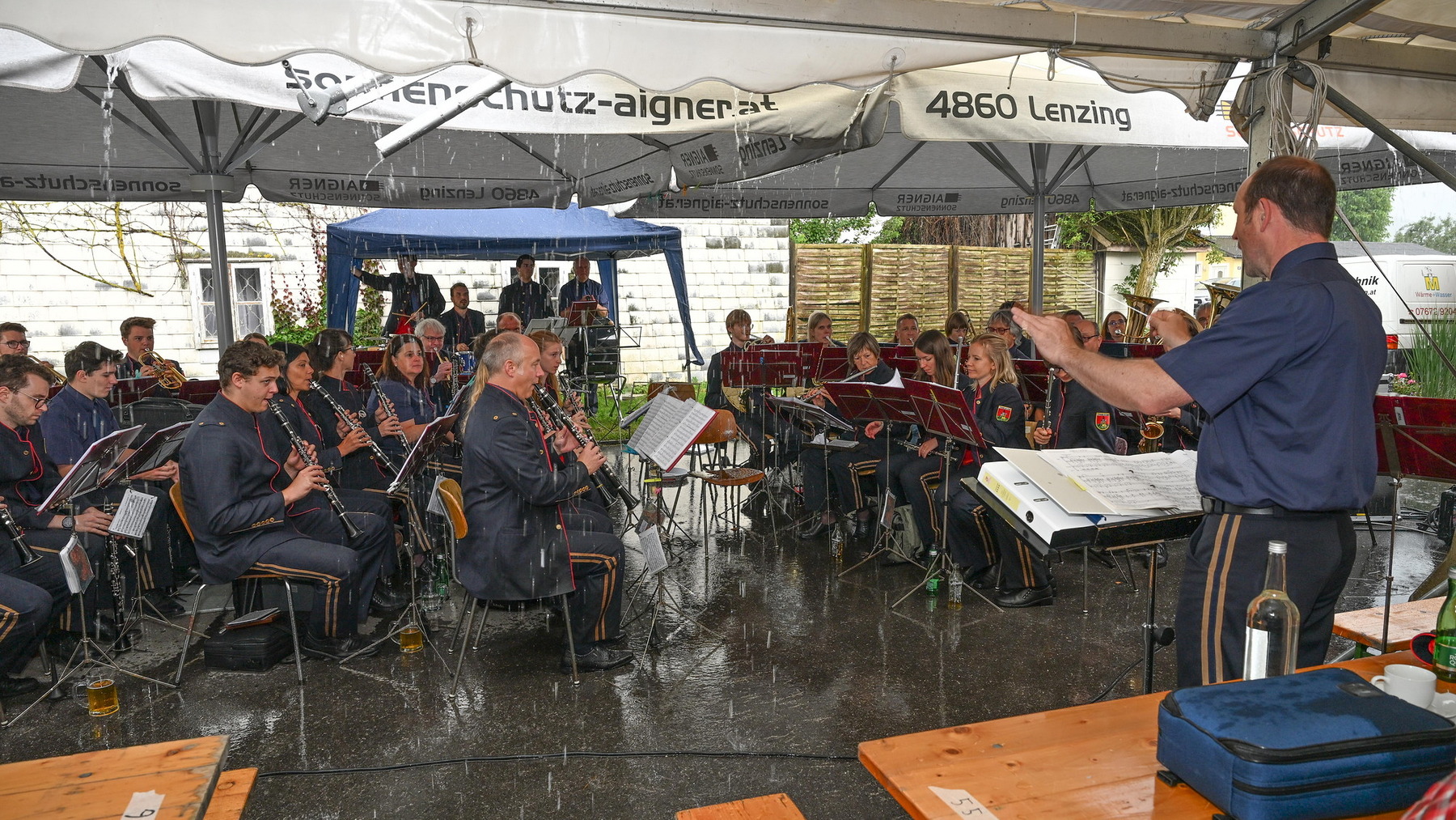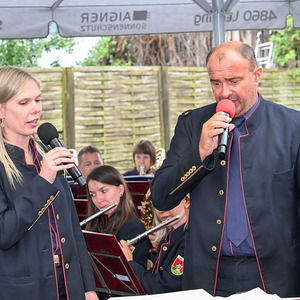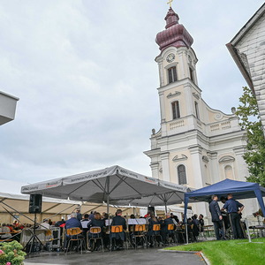 Bei diesem Frühschoppen auf dem Kirchenplatz, der vorsorglich vom Oberthalheimer Organisationsteam schon "überdacht" wurde, kam der Feiergedanke nicht zu kurz und wurde von der Marktmusik Timelkam mit flotten Klängen umrahmt.
