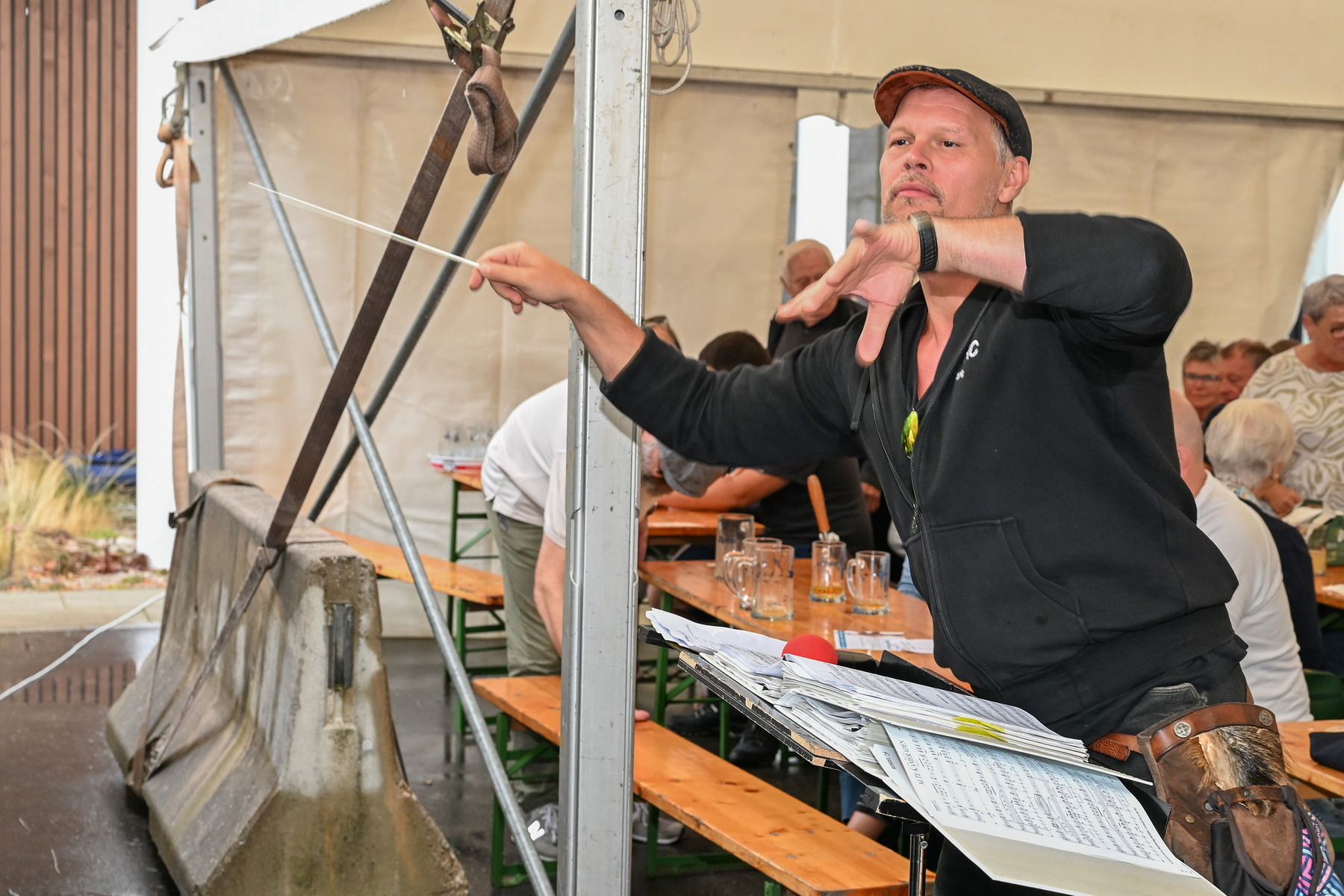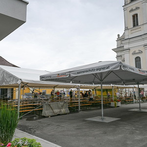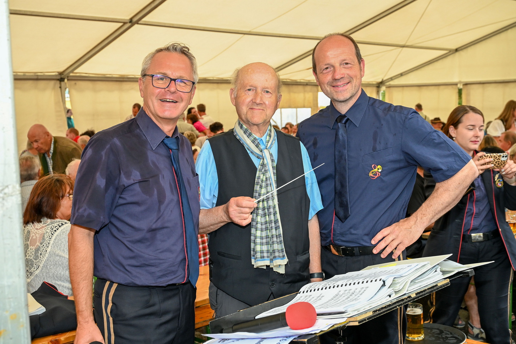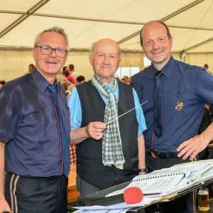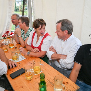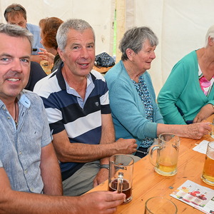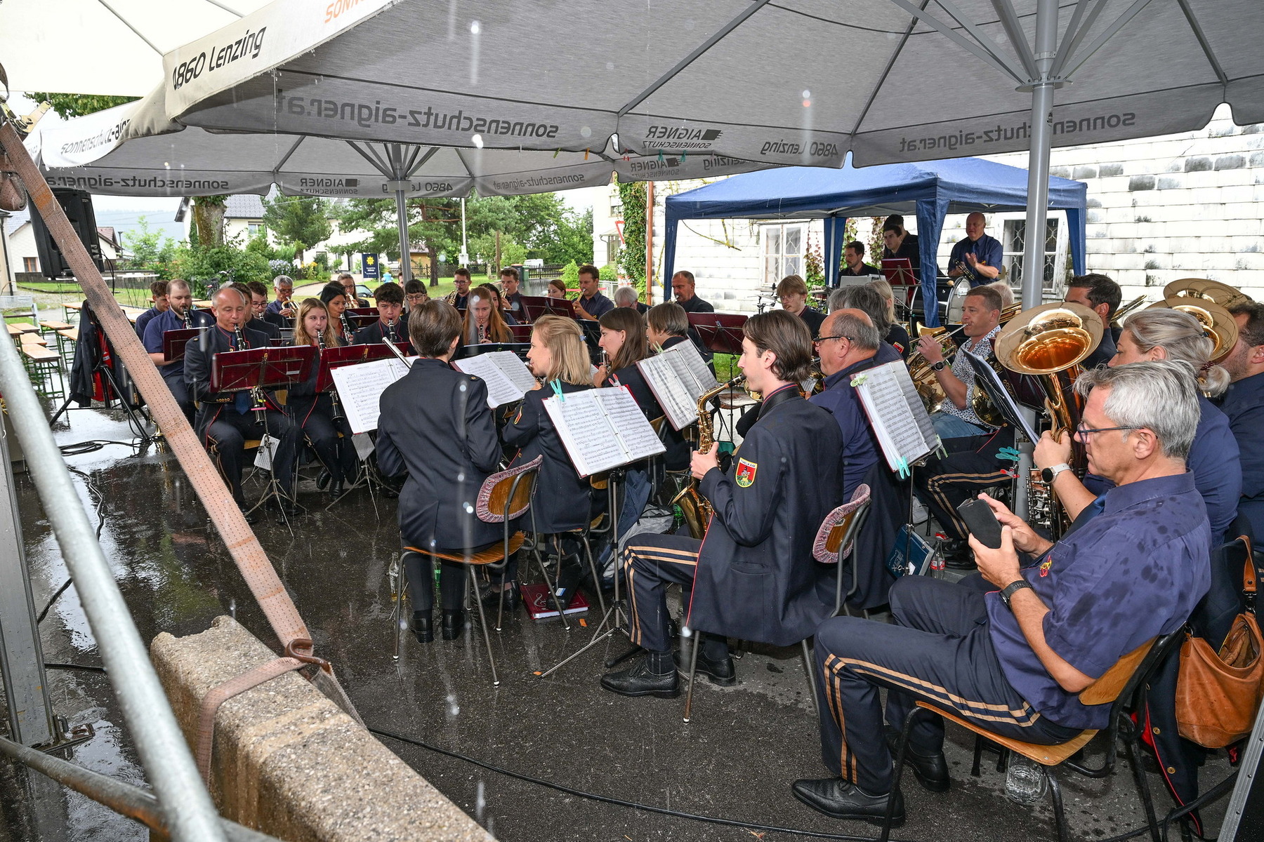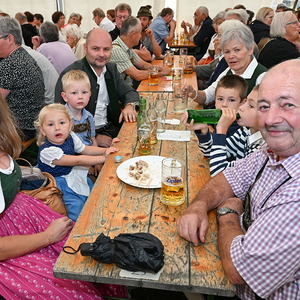Bei diesem Frühschoppen auf dem Kirchenplatz, der vorsorglich vom Oberthalheimer Organisationsteam schon "überdacht" wurde, kam der Feiergedanke nicht zu kurz und wurde von der Marktmusik Timelkam mit flotten Klängen umrahmt.