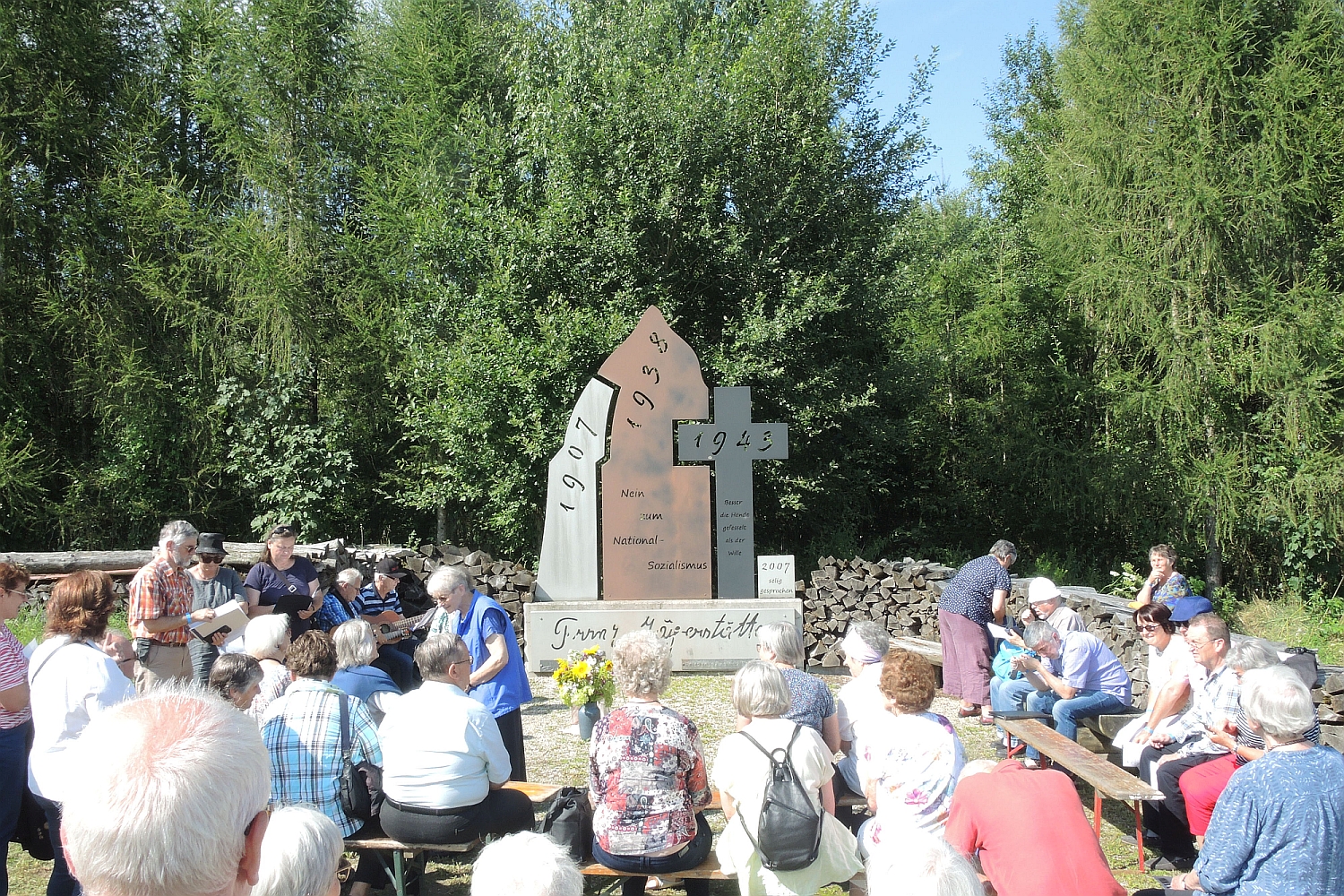 Um 16.00 Uhr, zur Todesstunde Franz Jägerstätters, wurde eine von Pax Christi gestaltete Andacht beim Jägerstätter-Denkmal gehalten. Das Denkmal war vor einigen Jahren von Hubert Sigl, einem Enkel von Franz und Franziska, der Kunstschmied ist, entworfen und errichtet worden.